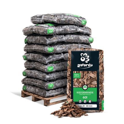 Sie können über PALIGO ganz bequem Rindenmulch Kiefer kaufen und wir liefern Ihnen 26 Säcke mit jeweils 60 Litern ordentlich gestapelt auf einer Palette mittels Speditionsversand. Bleiben Sie am Tag der Auslieferung durch das Erteilen einer Abstellgenehmigung oder vorheriger Terminabsprache zeitlich flexibler. Wenn Sie sich mehrere Säcke Rindenmulch Kiefer liefern lassen, profitieren Sie zusätzlich von unseren Mengenrabatten.